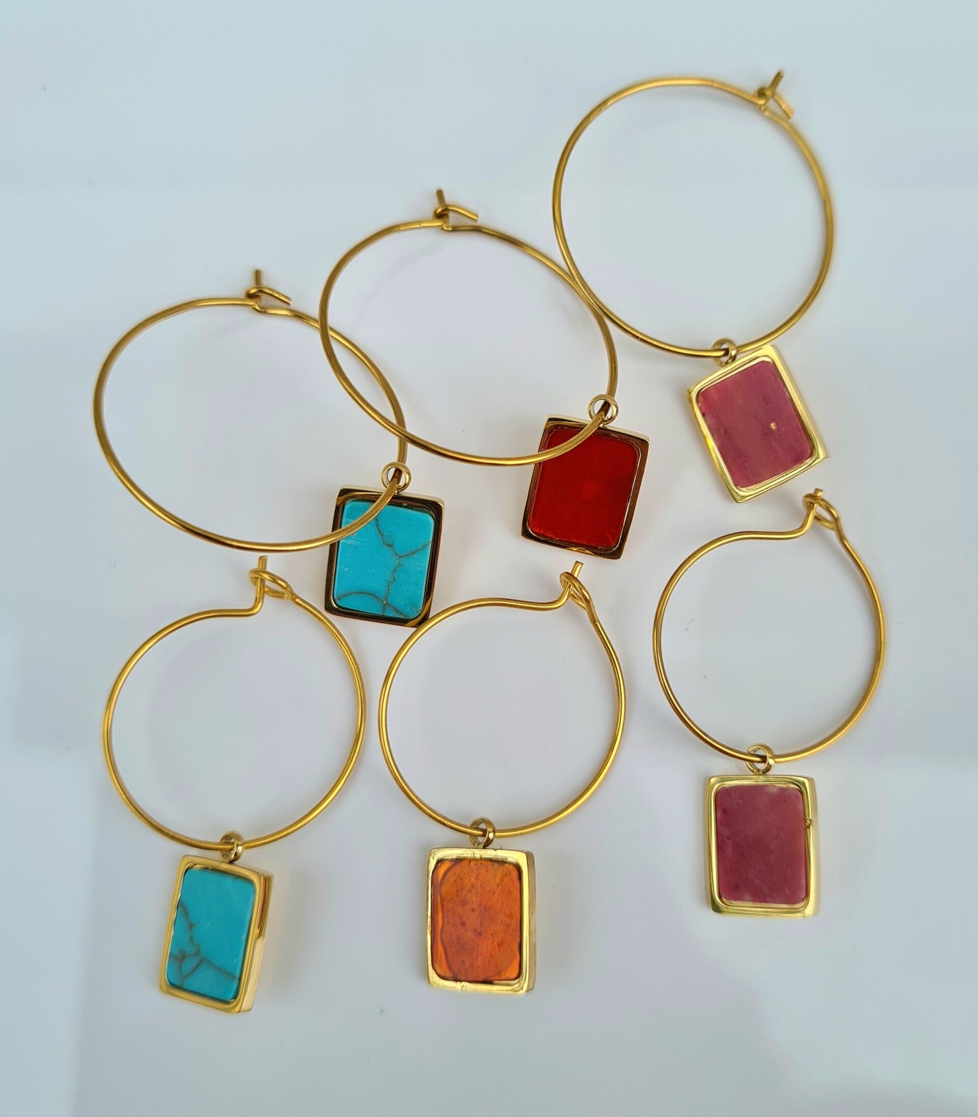 OORBEL creool met eraan een rechthoeken van RVS met erop een gekleurde steen.