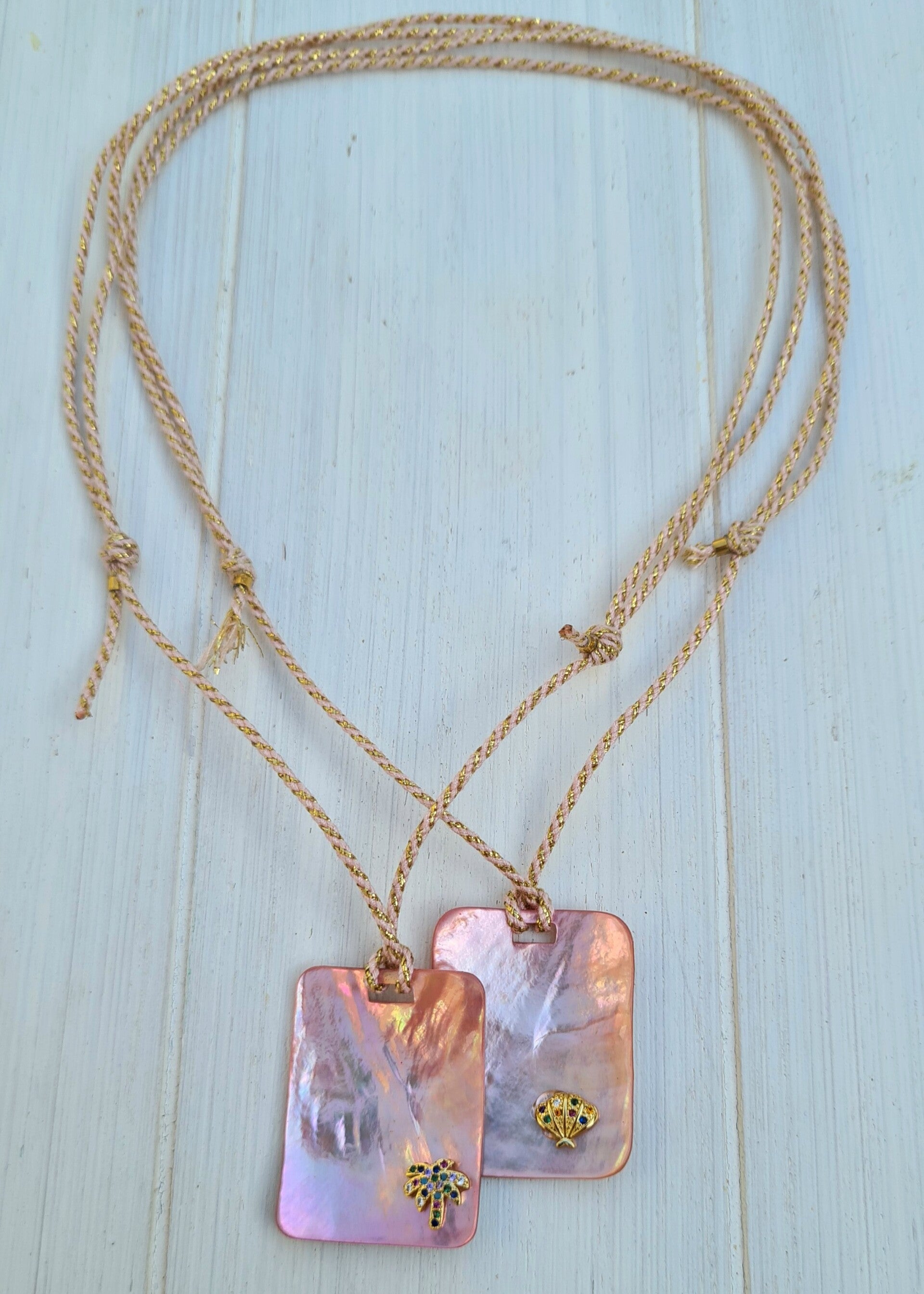 ketting van soft roze koord met gouddraad.