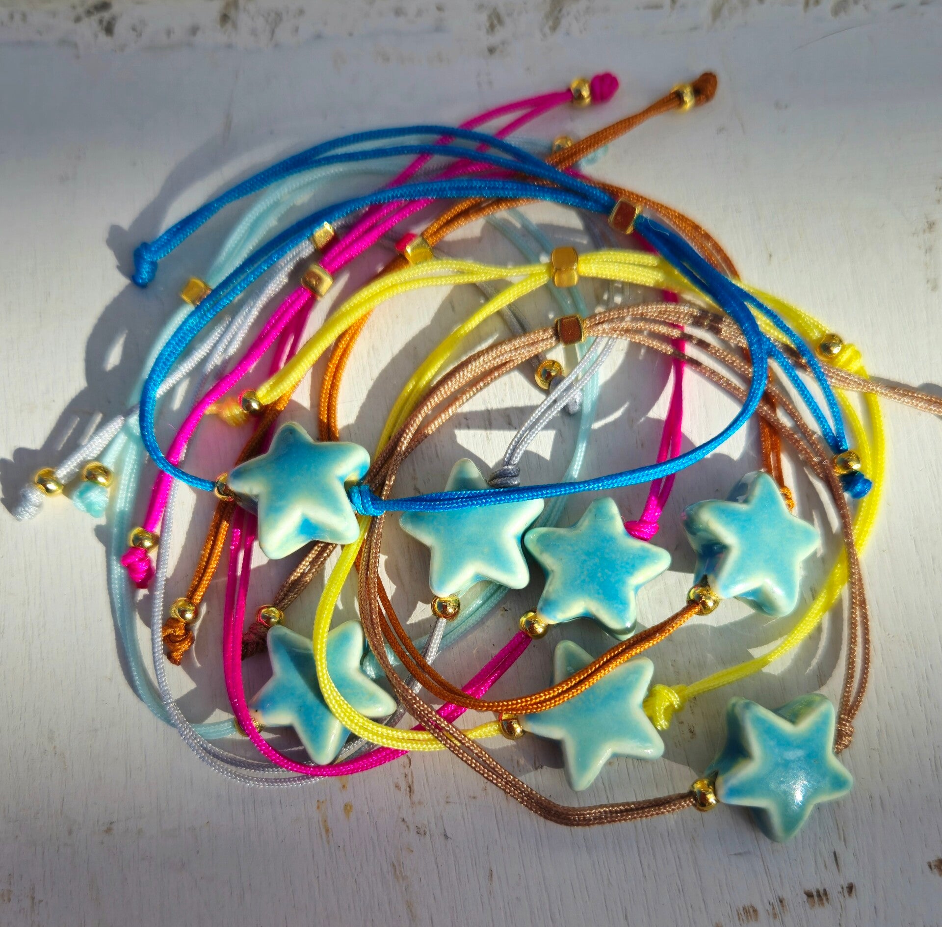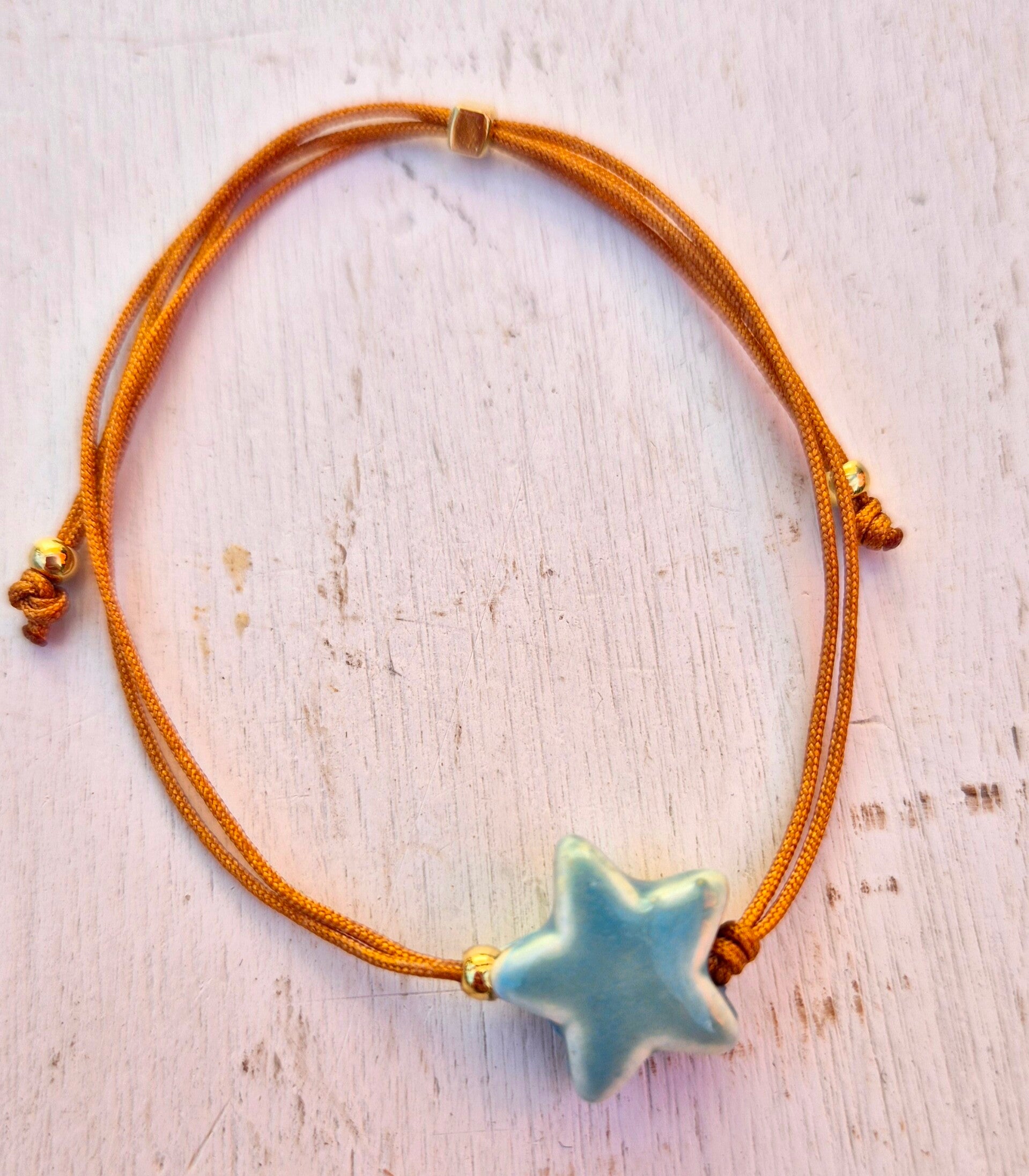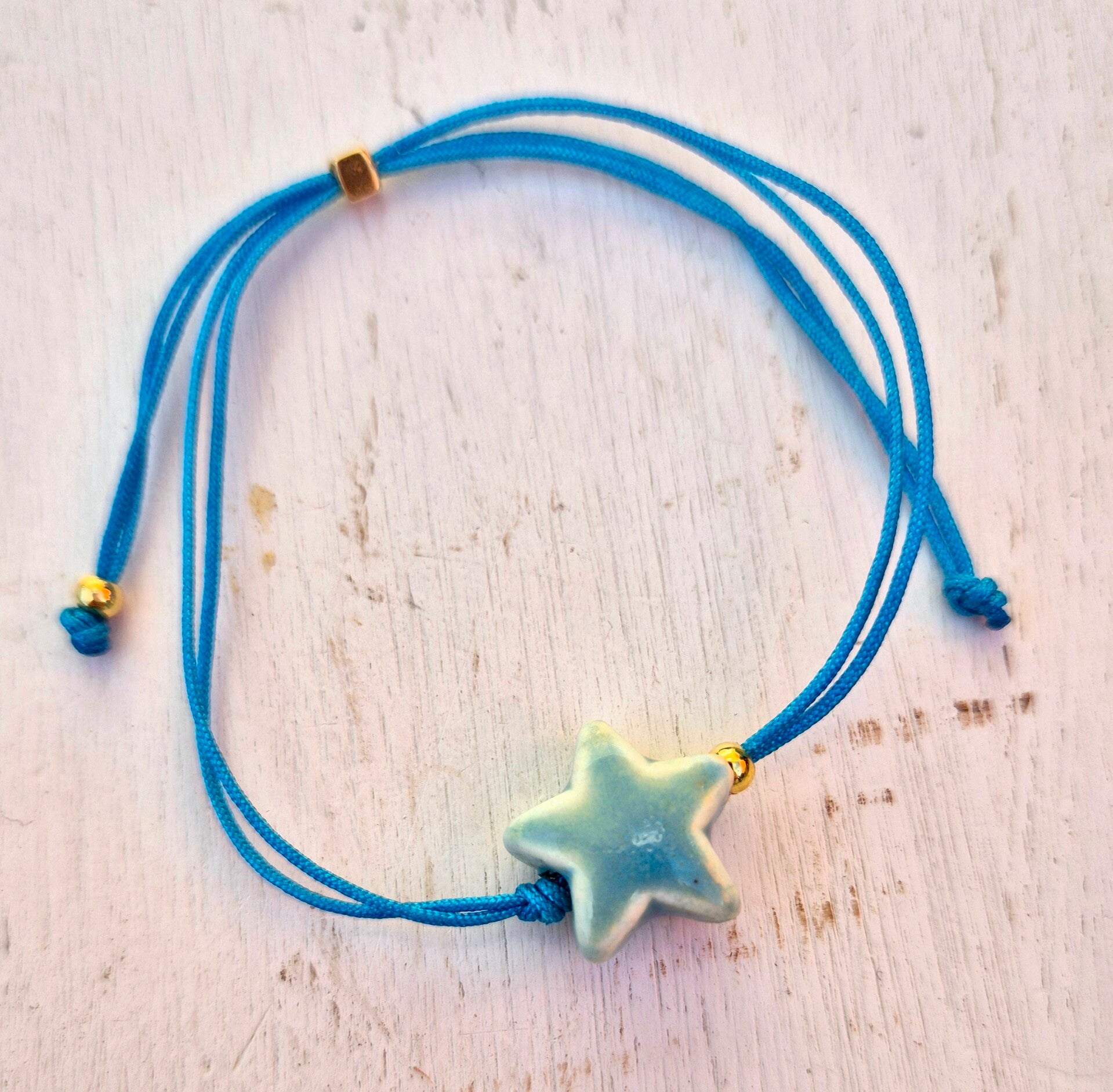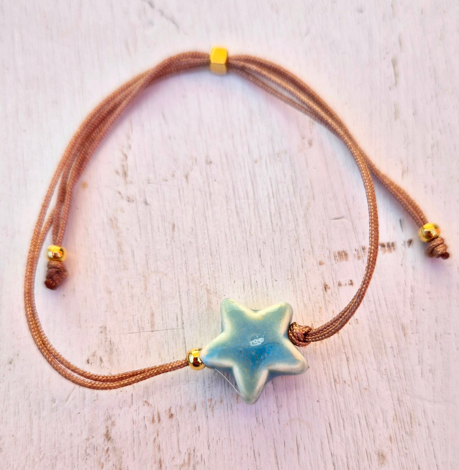 Aantrekarmband van koord met een keramiek STER lichtblauw