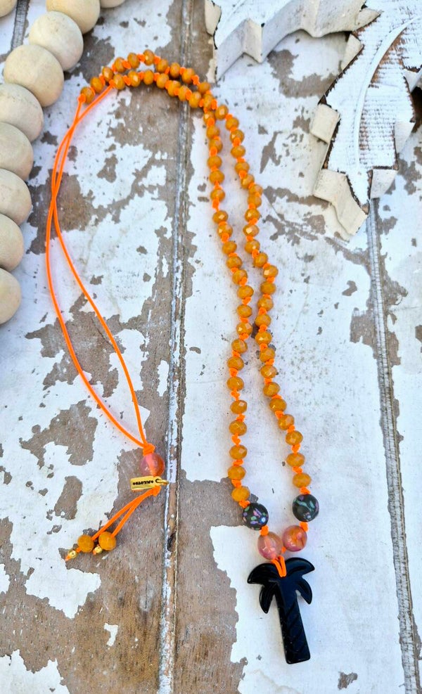 🌴ketting oranje ongeveer 84cm excl palmboom van 3cm en excl kraaldetail nek van 4,5cm