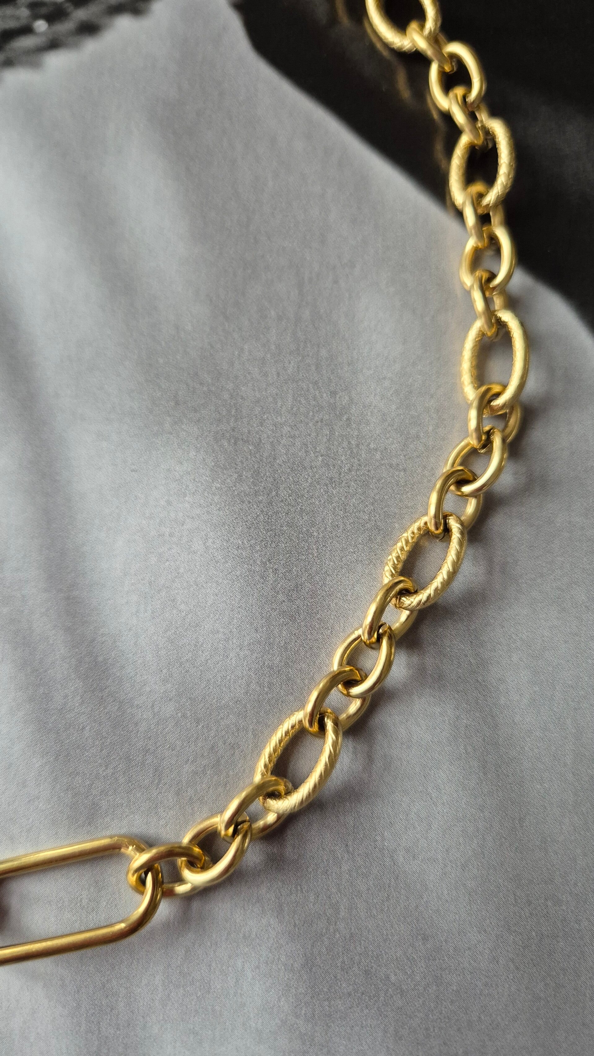Stevige schakel ketting met kleine details in de schakels.