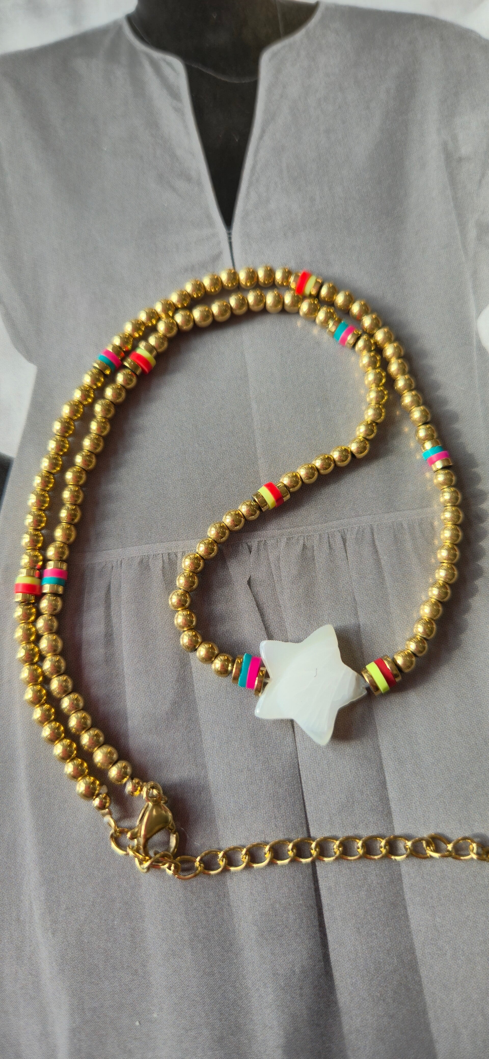 Ertussen kleine gekleurde kraaltjes slot stainless steel.