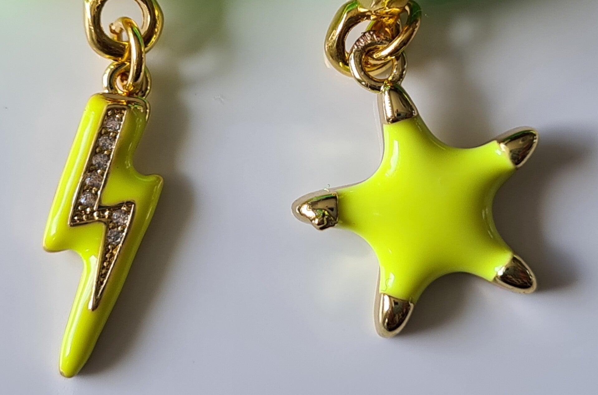 ▪︎BLIKSEM geëmailleerd neongeel epoxy van brass metaal met zirkonia